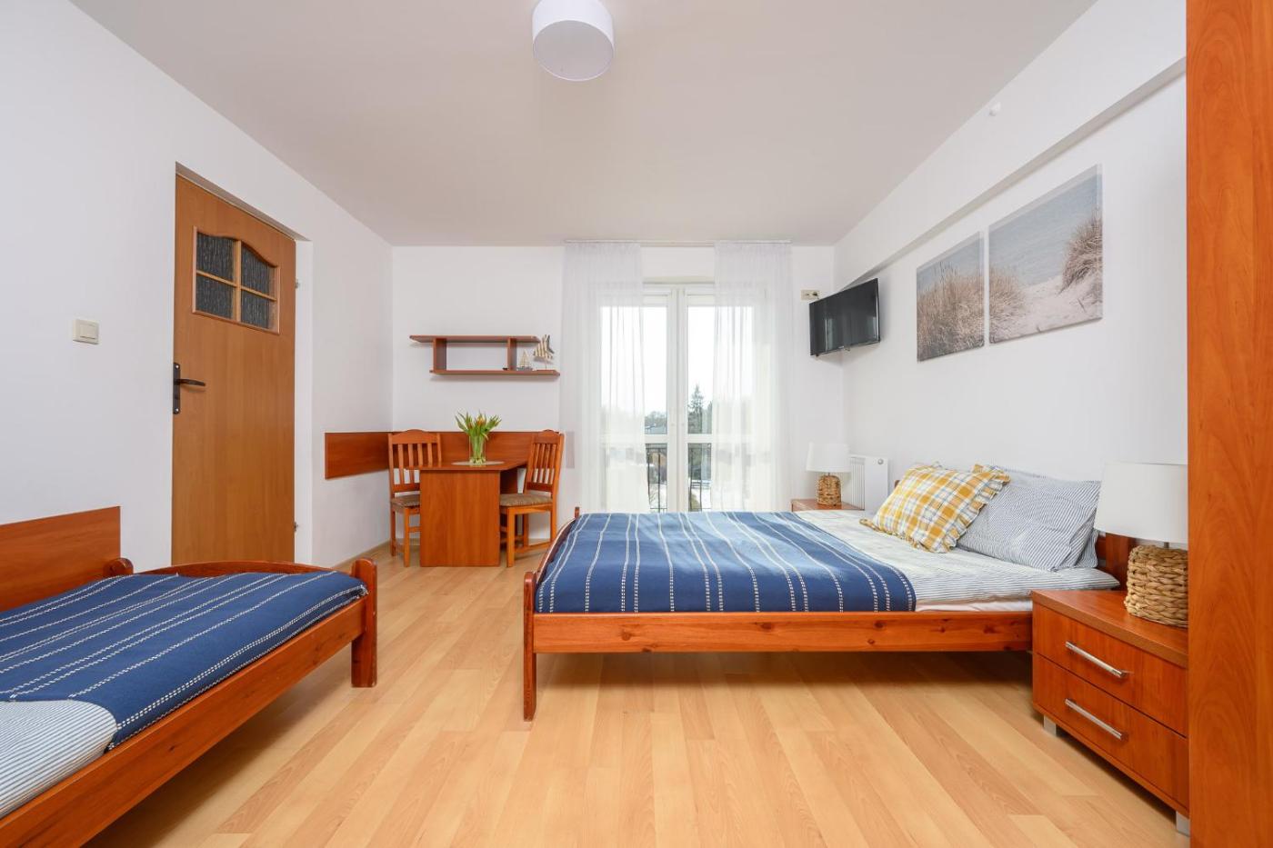Pokój trzyosobowy z balkonem. W tej opcji zakwaterowania zapewniono 2 łóżka. Pokój Trzyosobowy - 3 osobowy. Powierzchnia pokoju ok.: 14 mkw. ;