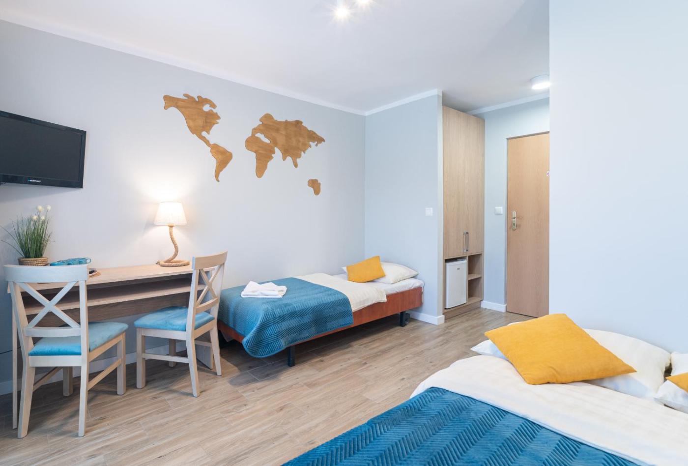 Pokój trzyosobowy. This triple room features a private bathroom, a private entrance, a wardrobe as well as a terrace. The unit offers 2 beds. Pokój Trzyosobowy - 3 osobowy. Powierzchnia pokoju ok.: 18 mkw. ;