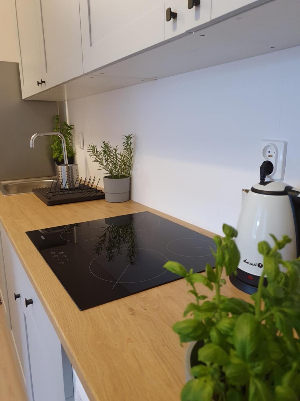 W apartamencie zapewniono kilka sypialni (4), aneks kuchenny z pełnym wyposażeniem oraz łazienkę (1).